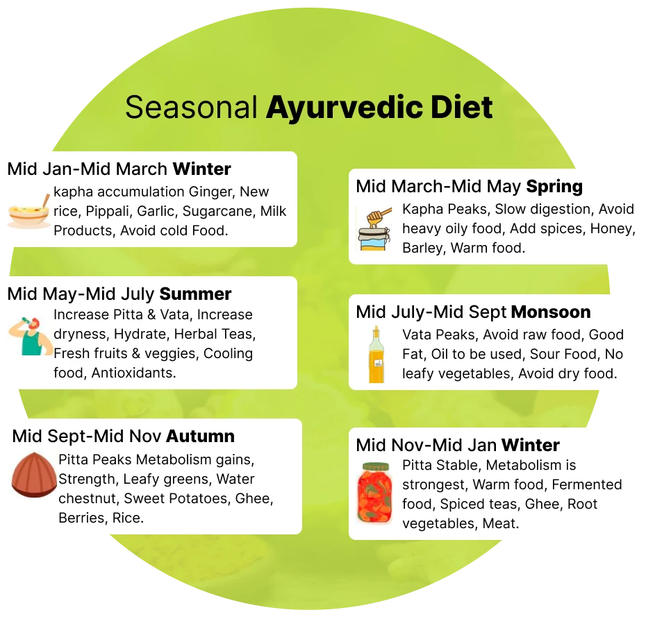 Embrace seasonal changes with Ritucharya plans, adapt your lifestyle and diet to harmonize with nature, and optimize health throughout the year.